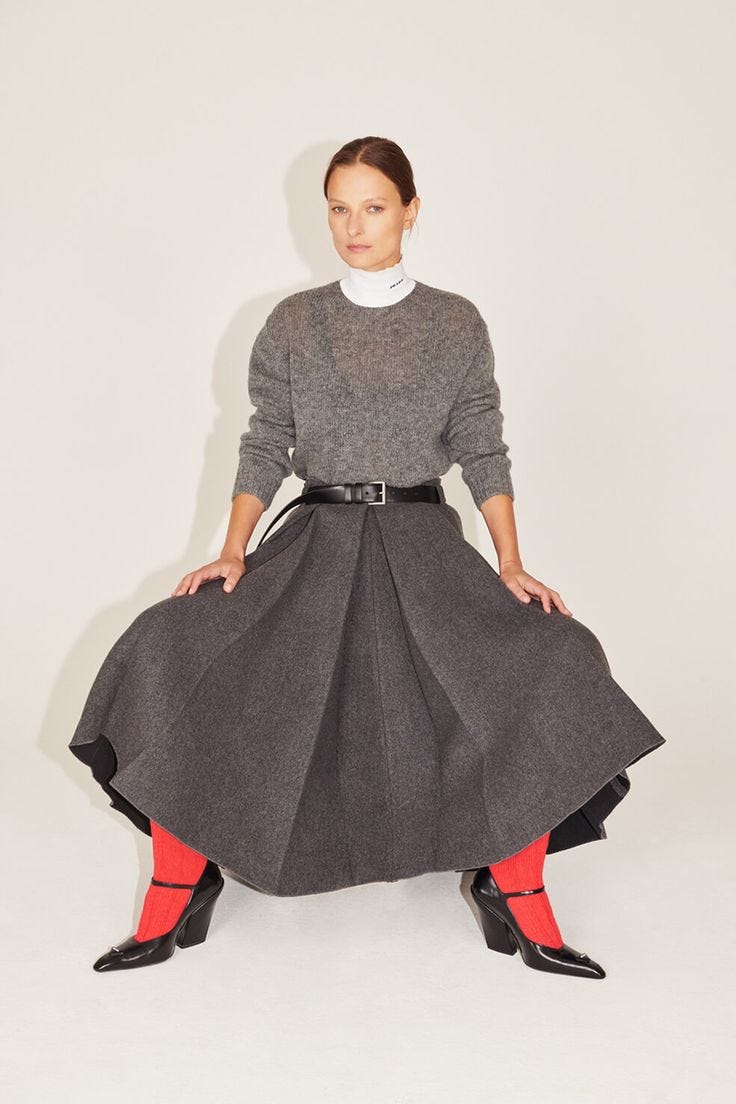 I don’t know if it’s because I’ve been watching My Brilliant Friend these days and forging connections between Italian school uniforms and Miuccia Prada, or perhaps the cold makes wool and leather feel indispensable, but I can’t stop thinking about academia-inspired garb. Currently on the hunt for a long wool kilt to live in this winter. With red tights underneath?! Are you kidding?!